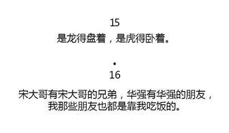亲爱的读者们,你是不是也和我一样,闲暇之余喜欢翻翻那些让人捧腹大笑的娱乐吃瓜经典语录呢?那些或幽默、或讽刺、或深情的句子,仿佛一剂强心针,让我们在忙碌的生活中找到一丝轻松和快乐。今天,就让我带你一起走进这个充满欢乐的世界,盘点那些让人回味无穷的娱乐吃瓜经典语录大全吧!