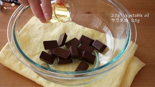 2. 融化巧克力:将巧克力切成小块,放入微波炉中加热,每隔30秒取出搅拌一次,直到巧克力完全融化。